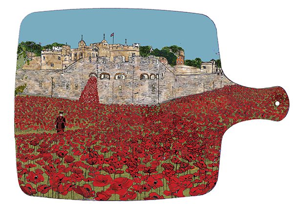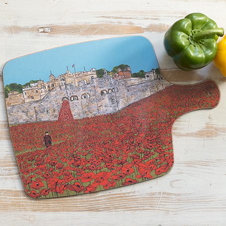 Large Chopping board featuring Emmeline Simpson’s design ‘Poppies at the Tower of London’